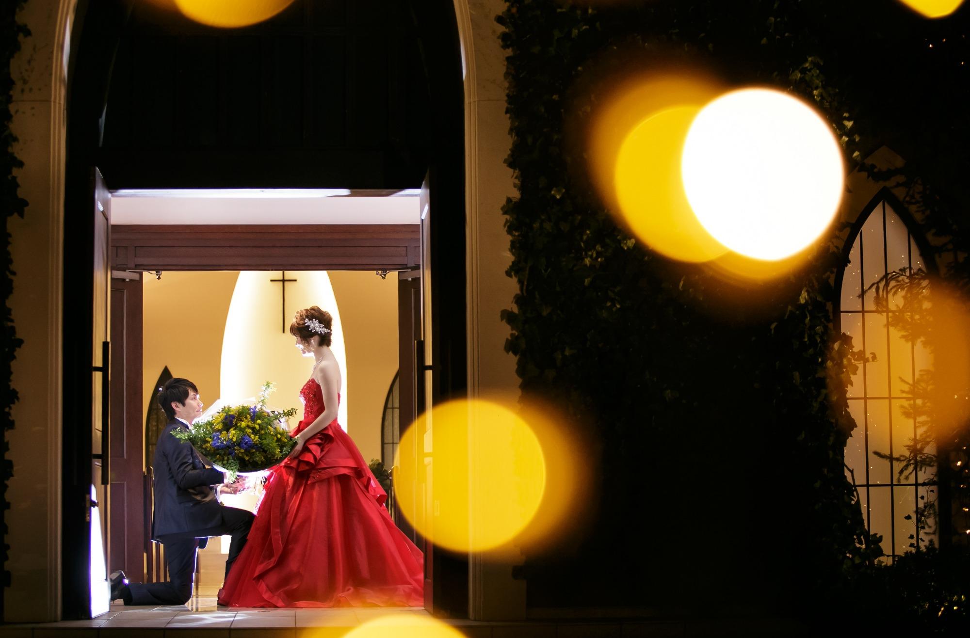 Masaruさん・Natsumiさん この度はご結婚誠におめでとうございました。 おふたりらしい明るく楽しいパーティーになりましたね。 ご新郎様からサプライズでお花束のお渡し! ご新婦様のお好みに合わせてお花をご用意されました お披楽喜後には、お二人で美しいライトに照らされる教会で 思い出の素敵なお写真も残しました