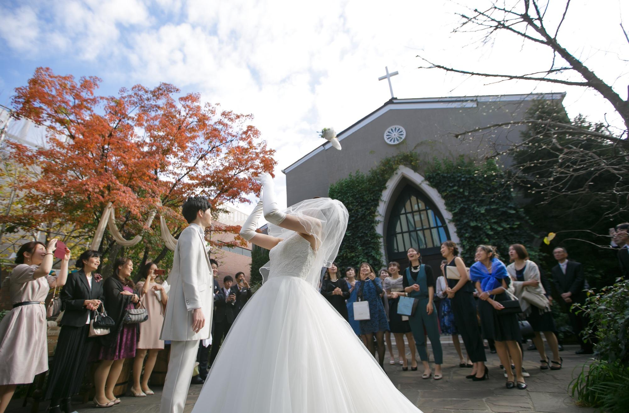 ー牧師先生からの入場前説明ー緊張も最高潮… 無事に結び笑顔溢れるお2人を迎えたのは ガーデンで待つたくさんのゲスト様の笑顔でした!