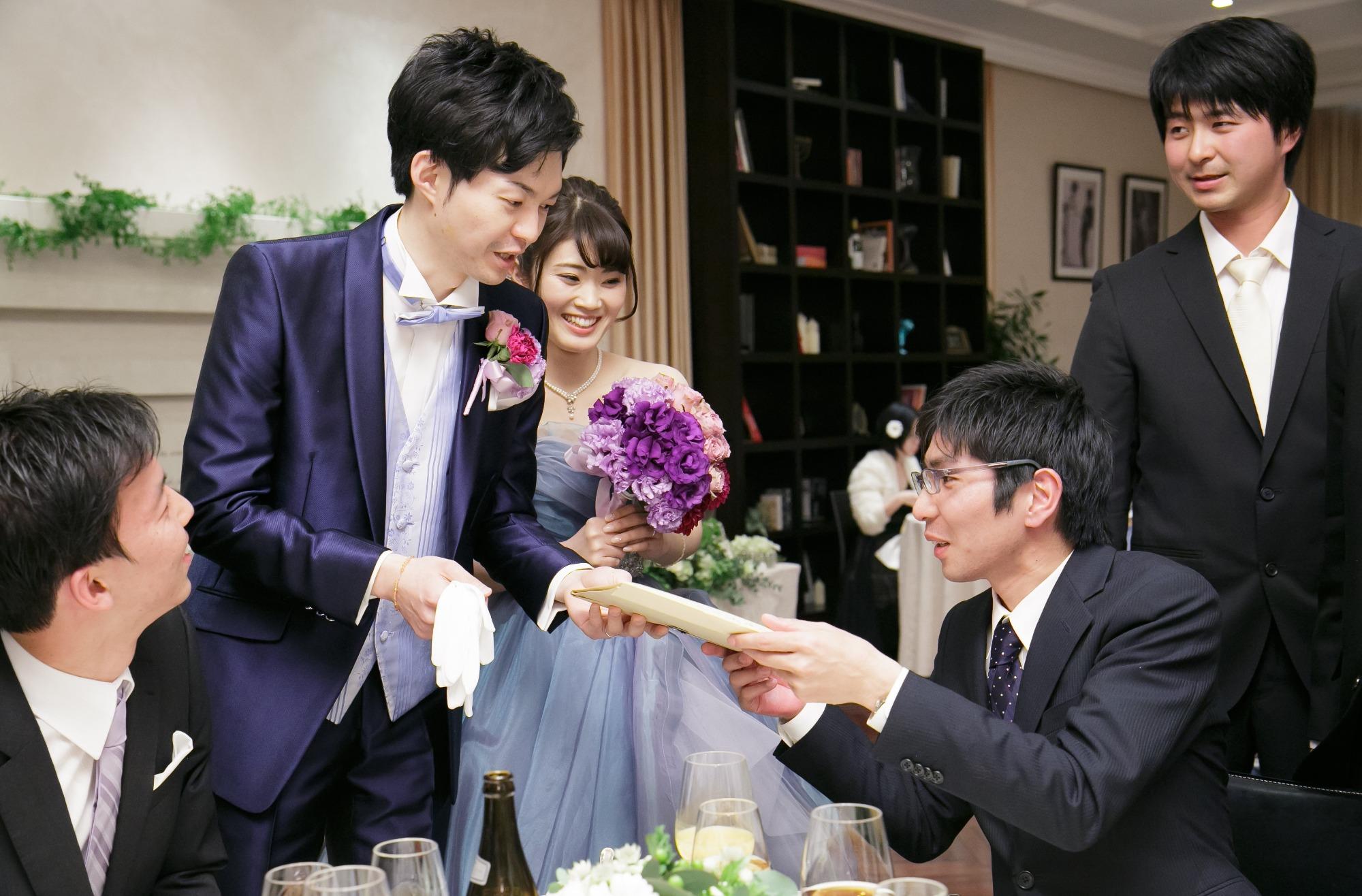 お2人は映画鑑賞が共通の趣味! ラウンドテーブル時にアイテムを配り映画公開順クイズを ゲスト全員に参加して頂くゲームを行いました! 正解者のテーブル皆様へプレゼントをご用意しました ゲストの方の盛り上がりがあってこその アットホームなパーティーとなりました♡