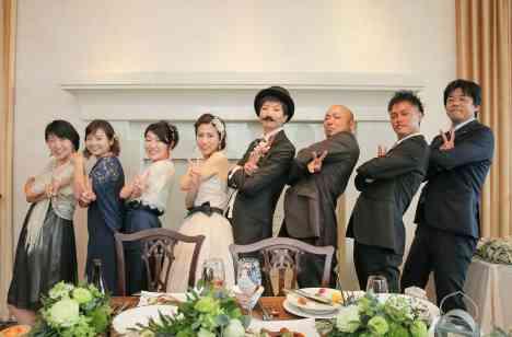 ユーモアたっぷりなご新郎様はつけ髭とハットを被ってご登場され、会場中が大盛り上がり♪ お衣裳に合わせたブーケとブートニアにも、おふたりのこだわりがたっぷりでとってもお似合いです! そんな中、ゲストの皆様とアットホームなフォトタイムをゆっくり満喫されました♪