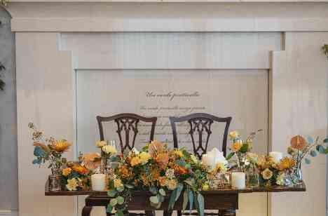 コーディネートはハネムーンで行った「パリ」・「ヨーロッパ」のようなおしゃれで少しラフな雰囲気。 グリーン基調の中に暖かみのあるオレンジ・イエロー・ベージュなど取り入れたいとご希望をいただきました。 装花のお打合せではデッサンやイメージ写真を元にコーディネートを組んでいきいざ当日! 会場内はおふたりの好みバッチリのコーディネート♪ ゲストもたくさん写真を撮ってくださっていました。
