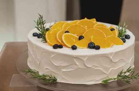 演出等はおこなわずシンプルでゲストの皆さまとの時間をメインで進行を考えていったおふたりですが会場内のコーディネート以外にこだわったのはウエディングケーキ♪ トレンドでもあるラウンド1段ケーキ 生クリームの絞り方やフルーツの載せ方までオーダーメイドできる当館。 おふたりもたくさん写真を見ながら悩んでたどり着いた会場内の装花に合わせたオレンジメインのナチュラルなケーキ。
