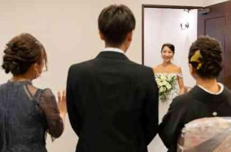 ご家族には結婚式当日までウェディングドレスを着た姿は秘密にしていた新婦様。お仕度完了後、新婦様とご家族との「ファーストミート」が行われました。扉を開けるといよいよご対面。特別な時間ならではの、何とも言えない家族の笑顔、涙の表情、幸せな空間となりました。一生忘れられない、大切な家族との思い出が出来た瞬間です♡