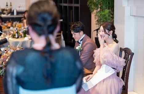大好きなご友人への「突撃インタビュー」を行いました。ゲストにとっては、普段なかなか伝えられない新郎新婦様への祝福の気持ちを直接伝えられる貴重な機会となり、また、新郎新婦様にとってもゲストの温かい言葉や思いがけないエピソードを通して、自分たちの周りの人々の愛情を再確認できる感動的なシーンに。会場全体が笑顔と感動に包まれ、一体感を生み出す演出は大成功でした!