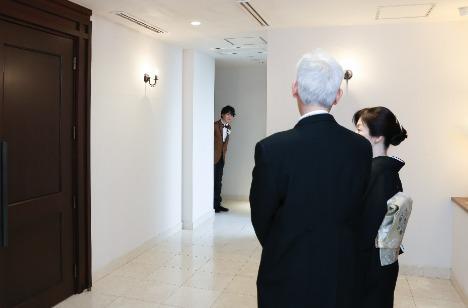 お仕度を終え、お二人が向かわれたのはご家族のいる控室。今まで育ててくれたご両親様に、感謝の気持ちを込めたお手紙とともに晴れ姿を1番最初にお披露目。お二人の姿を見た皆様は今までの思い出を振り返りながら、大切な時間を過ごされていました。 ファミリーミートはお式前に家族との特別な時間を作ることができる素敵な演出の1つです☆