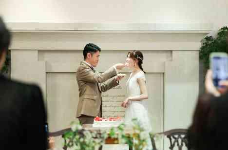 お二人のこれからの結婚生活の想いが込められているファーストバイト☆それぞれの想いとともにお互いに食べさせ合う仲睦まじいお姿に会場もほっこり♡ 大切な方々に見守られながらのケーキ入刀&ファーストバイトはお二人への祝福の想いと愛情が込められた、会場全体が幸せの雰囲気に包まれた素敵な演出となりました。