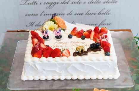お二人のそれぞれの出身地にちなんだデザインを取り入れたオリジナルケーキでケーキ入刀&ファーストバイトのスタート☆ お料理も皆様に楽しんでいただきたいという想いで、お二人で考えたデザイン! ゲストの皆様からもかわいらしいケーキに歓声が♪ 皆様に見守られながら、ケーキ入刀&ファーストバイトを行ったお二人☆仲睦まじいお二人の姿にほっこりする瞬間でした♡