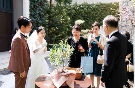 ゲストの皆様にご参加いただいてスタートしたのは植樹セレモニー☆幸せを呼ぶ樹ともいわれているオリーブの苗に、これからのお二人の人生が幸せでありますようにというゲストの皆様の想いをこめ、木に土を入れていただきます。そしてお二人がお水をあげ、記念樹が完成☆ 今後シンボルツリーとして、ゲストと一緒に植えた木が、家族の成長と共に大きくなっていくのが楽しみです♡