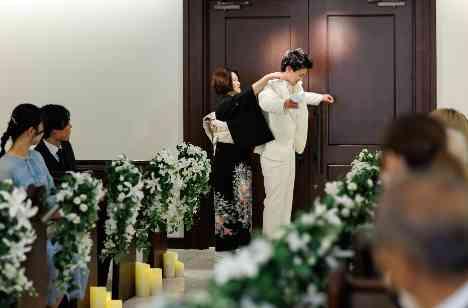 ご新郎様の挙式の入場は、お母様にお手伝いをいただきジャケットセレモニーからスタート。 永遠の誓いをたてるお式は、これまで支えてくださったご家族様にもご参加いただき、お支度が結びバージンロードを歩きだすご新郎様を送り出すお母様の表情はとても優しく、セレモニーの始まりの瞬間をゲストの皆様もあたたかく見守ってくださりました。
