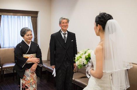 挙式当日。少し緊張した面持ちでご入場されたご新郎様。そしてお父様にエスコートされてご入場されるご新婦様。様々な想いに包まれながら1歩1歩、しっかりと踏み出すその姿に、ゲスト様も温かいまなざしで見守っておりました。 そして挙式中にご披露されたお手紙では、お父様のお気持ちが文章にのっており、会場全体が優しい空気に包まれた挙式でした。