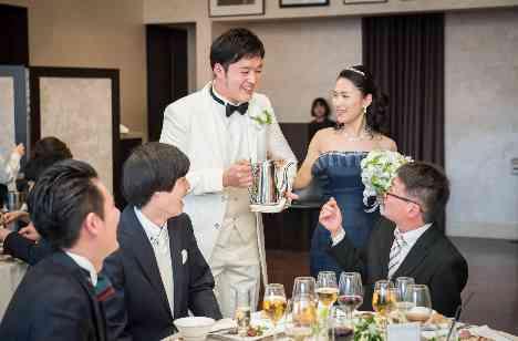屋久島で出会ったからこそ屋久島の郷土料理を活かしたいと仰っていたお2人。たくさんの案がある中で、実はご新婦様が小さい頃からお母様に作って食べさせて頂いていた“鶏飯(けいはん)”が思い出の料理であることに気づきました。鶏飯とは、お出汁をかけて食べるお茶漬けのような屋久島料理。当日はお色直しのタイミングで出汁が入ったポッドを持ちながら皆様にサーブするお2人の姿が。会場全体が笑顔あふれる時間となりました