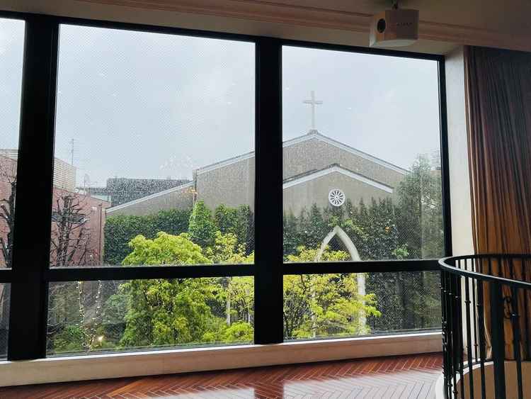 都内の一等地にありながら、緑豊かで落ち着いた雰囲気だった。教会の中の雰囲気も、木目調でありながら重厚感なあり、中も外も落ち着いた感じだった。
