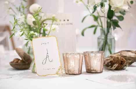テーブルコーディネートはホワイトとグリーンを基調としたコーディネートに。お席にはゲストの方ひとりひとりに向けたおふたりからのメッセージをご用意されていました。ゲストの方へのおもてなしを重要視されているおふたりならではの演出です。披露宴入場前のオープニングムービーは当式場の特徴のひとつである大迫力の5面スクリーンでお手伝いをさせていただきました!