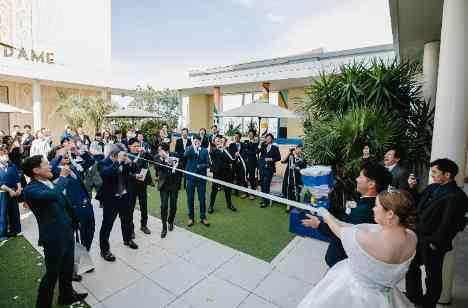 挙式後に行われるアフターセレモニー 女性ゲストには王道のブーケトスをしてすごく盛り上がりました! 男性ゲストにはおでこパッチンで根性試し! おでこパッチンでおでこに当たらなかった強運の持ち主に自分たちが用意した景品をプレゼントしました! どちらもすごく盛り上がってゲストに楽しんでもらうことができてよかったです!