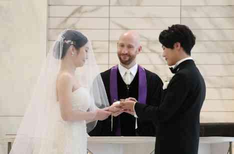 「誓いの言葉」 教会式での誓いの言葉は牧師の問いかけに答える形で行い、おふたりが「はい、誓います」と答えることで誓約が成立します。いかなる時もお互いを愛し、これからの人生を共に歩んでいく決意が込められています。 神に約束することで、神がふたりを祝福してくれると考えられており、参列者はそれを見守る役割です。