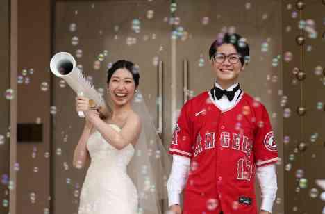 挙式後、バブルシャワーの中おふたりが登場! 新郎様は大好きなメジャーリーグのユニフォームを着用し、新婦様は巨大バズーカをもってカジュアルで楽しい装いに♪ シャボン玉が太陽の光を浴びて幻想的な雰囲気になり、おふたりの素敵な表情と相まってシャッター音が鳴りやみません! ゲストの皆様も大盛り上がりです!