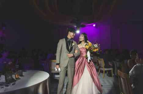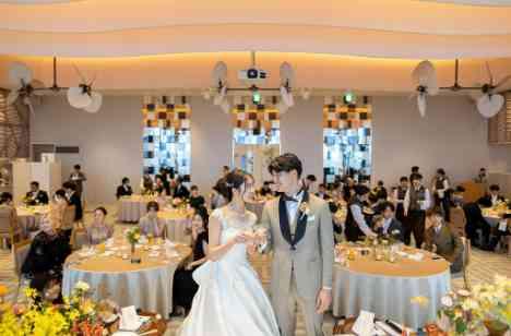 扉が静かに開いたその瞬間、あたたかな拍手と歓声が会場を包み込みました。ゲストの視線が一斉におふたりへと注がれ、笑顔と感動に満ちた披露宴がいよいよスタート。新郎新婦の手を取り合う姿には、これからの未来への決意が感じられます。 おふたりが選ばれたお気に入りのBGMにあわせて、会場全体の照明がドラマチックに切り替わると、空間には一体感が生まれ、まるで映画のワンシーンのような雰囲気に。