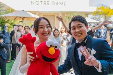 挙式後のガーデンでは、祝福の拍手に包まれながらアフターセレモニーがスタート。 澄んだ空の下、緑に囲まれた開放的な空間で、大切なゲストと笑顔を交わす幸せな時間が流れます。 おふたりの大好きなキャラクターのぬいぐるみも登場し、写真撮影や演出に華を添えました。 思い出の詰まったぬいぐるみとともに過ごすガーデンでのひとときは、おふたりらしさにあふれ、会場全体が温かな空気に包まれました。