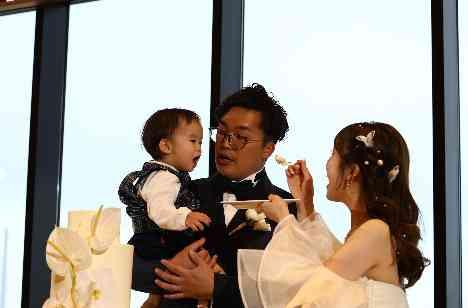 おふたりの特別な一日に、お子様がケーキバイトに挑戦する微笑ましいシーン。 無邪気な笑顔と一生懸命な姿に、会場中が自然と笑顔に包まれました。 家族みんなで祝う温かな雰囲気が伝わり、まさに"ファミリーウエディング"ならではの心温まるひととき。 お子様の純粋な喜びが、ゲストの心にも深く響き、家族の絆と未来への希望を感じさせる、忘れられない思い出となりました。