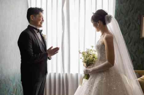 挙式前に行われたファーストミートの瞬間。満面の笑みを浮かべる新郎の表情から、新婦の深い愛情が自然と伝わり、二人の視線がしっかりと重なります。その姿に周りも思わず笑顔に包まれ、緊張がほぐれ、喜びと幸せがあふれる中、手を取り合いながら二人だけの特別で温かな時間がゆっくりと流れ、心に深く刻まれるかけがえのないひとときとなりました。