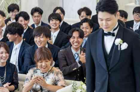 静まり返ったチャペルで、新郎がゆっくりと祭壇へ歩みを進めます。静かな足音が響く中、その姿を見つめるゲストの笑顔が温かく柔らかな祝福の空気を生み出します。高い天井から差し込む穏やかな光に包まれ、新郎の真剣な表情とゲストの優しい微笑みが重なり、緊張と温もりが入り混じる静かで心に深く残る、感動的なひとときがゆっくりと流れました。