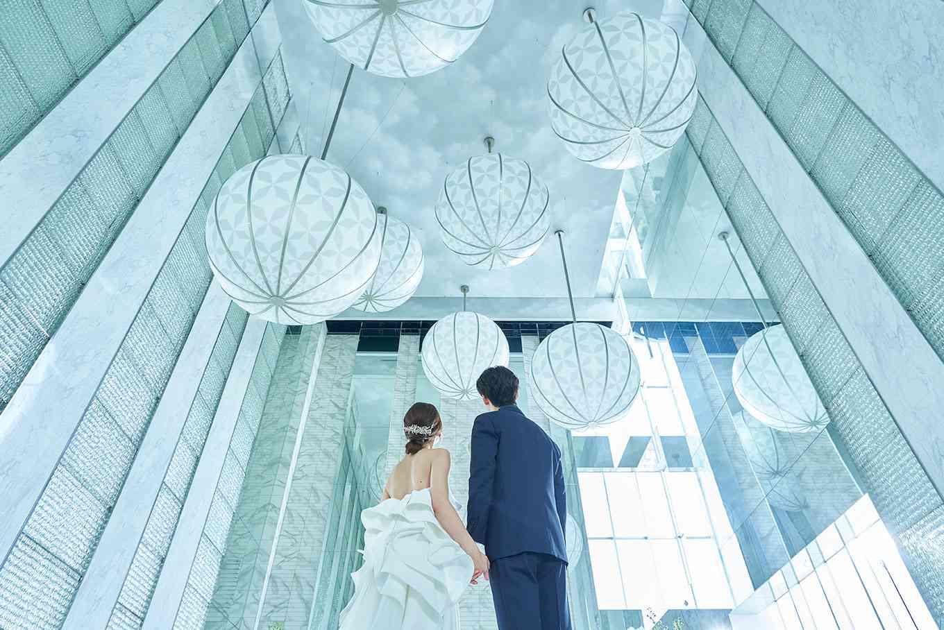 デザインコンセプトは地上60mの「人生の旅のはじまり」。高さ15mの天井まで届く大きな窓から降り注ぐ陽光が、チャペル全体を優しく包みこむ。圧倒的な迫力とゲストをもてなす工夫が沢山詰め込まれております。