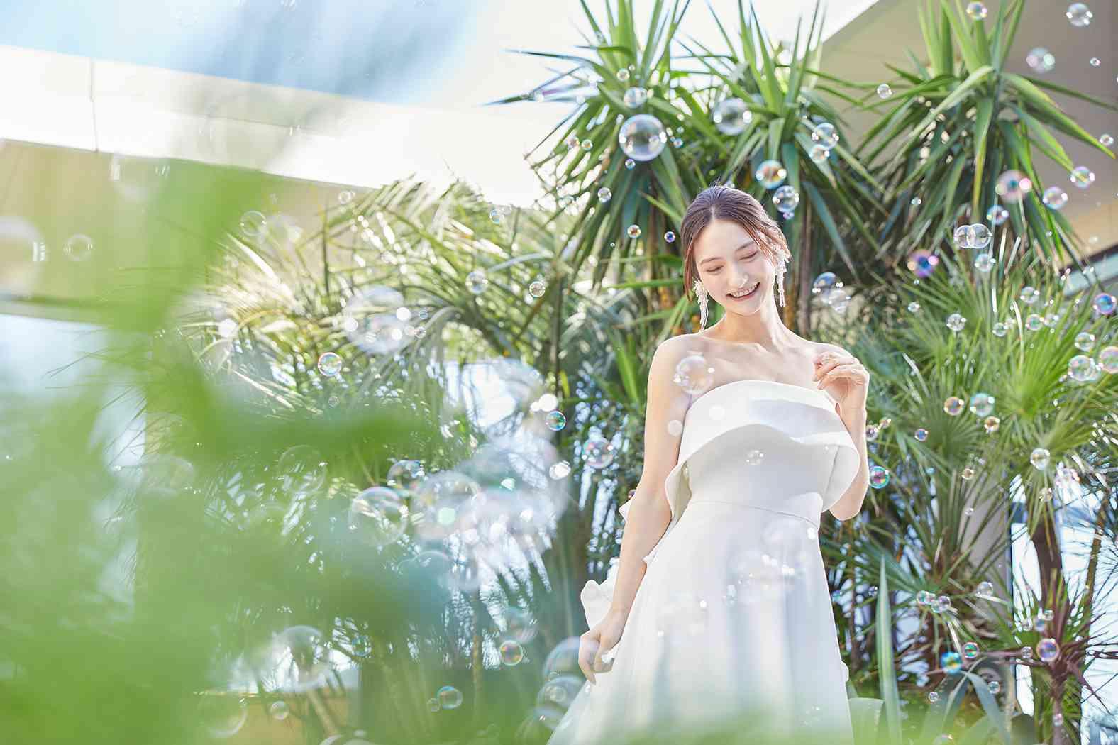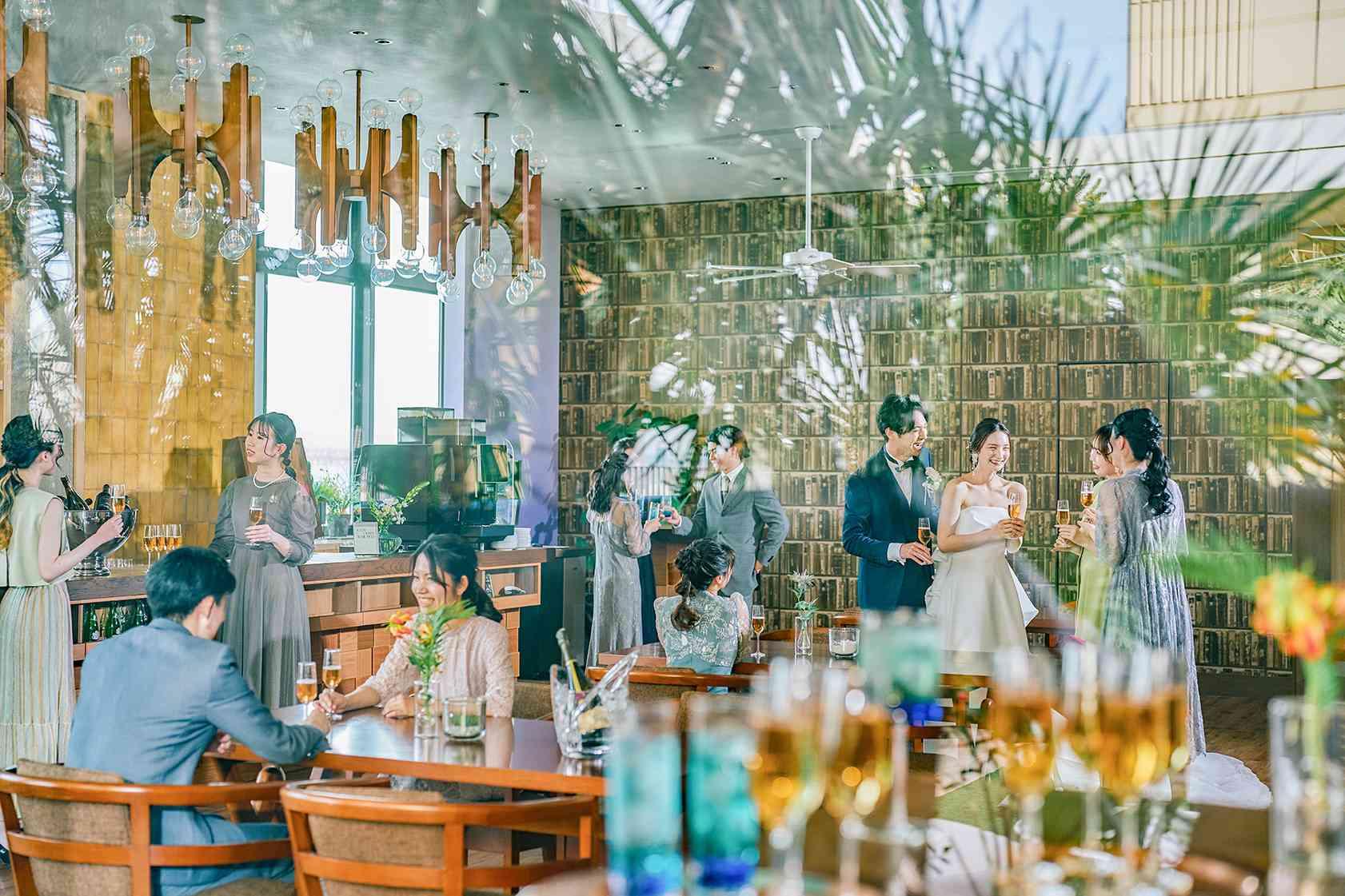 アフターセレモニーは緑と水が煌めくスカイガーデンで。 空と海を望む景色の中、ゲストと心に残るひとときを。