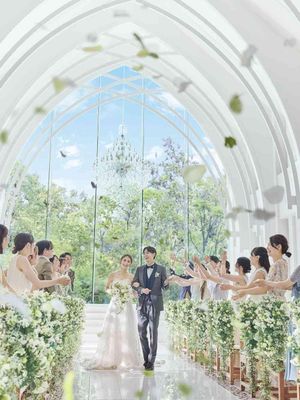天井高10メートルとガラス張りのチャペルは光が差し込み自然との調和を感じながら、二人の新たな始まりを祝福し、神聖な誓いの場をより印象深くします。