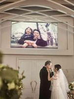 挙式の際にチャペル内で映像を流すことができ、お二人のお父様やお母様、家族との大切な思い出を映像にまとめ、参列者の皆様と一緒に振り返ることができます。この感動的な映像演出は、大切な家族の絆を感じられる特別で心温まる瞬間にしてくれます。