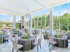ララシャンスOKAZAKI迎賓館は、岡崎駅直結の便利な立地にありながら、リゾート感溢れる披露宴会場が魅力です。大きな窓の外には、水辺と緑が広がり、自然光が差し込む心地よい開放的な空間で特別なひとときを演出します。