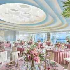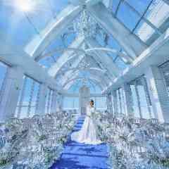 〈空と海の教会*Crystal Chapel〉当館のシンボル『クリスタルチャペル』内にあるバージンロードを音楽に合わせて入場体験♪ 「当日のイメージがふくらみました!」と先輩花嫁にも大好評です。いつもと少し違う、デートを楽しんでみてください♪