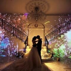 【演出人気NO.1】ゲストから歓声のあがるプロジェクションマッピング映像を体験!今までとは一味違う演出をしたい方必見!憧れの階段入場も体験出来て、結婚式のイメージもが湧きやすいと大好評!