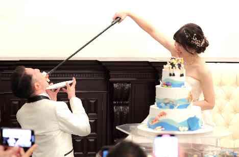 親族にもゲストにもとにかく笑ってほしいと思い、全力でふざけ倒しました。 ファーストバイトはマジックハンドで、お色直しの入場ではジャンボリミッキーをゲスト全員で踊るだけでなく、式場のスタッフも踊ってくれて大変盛り上がりました。 ガーデンにはソファーを用意していただきゲストと写真撮影、余興でダンスをしてもらい新郎も飛び込みで踊るなど、最初から最後まで休むことなく楽しんでもらえたと思います。