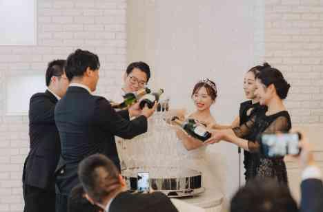 ゲストに楽しかった、面白かったと思ってもらえる日にしたいと思い、定番の流れや演出ではなく、ケーキ入刀ではなくシャンパンタワーなど、面白さと意外性などの驚きがあるような、でも私達らしくオリジナリティのある演出にしたいと考え、構成を決めていきました。 様々な無理なお願い、ワガママにも担当者様、式場のスタッフの皆様に聞いていただき、皆様のおかげで大変素晴らしい会になったと思っております。