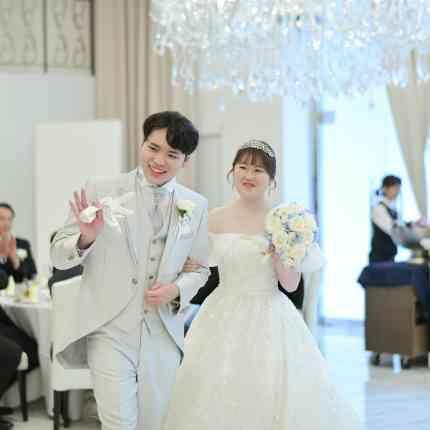 挙式が厳かだった分、披露宴ではガラッと変えてアットホームな雰囲気にしたいなと思いました。 また、太陽の光が入ればいいなと思ったので、4階の披露宴会場を選びました。 ゲストと近くで話したり、素敵なタキシードとドレス姿も写真にたくさん残してもらいたかったので、少しコストはかかりましたがソファ席にしました。