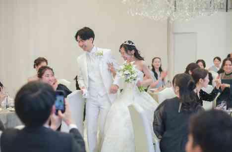 こちらの式場はチャペルの赤いバージンロードがすごくきれいで、見学の時点でベールを引きずって歩くイメージが沸きました。 挙式は厳かに、披露宴はワイワイ和やかにしたいという思いがあったので、こちらの式場に即決しました。 当日の生演奏は曲が決まっていますが、オプションで変更可能なので、好きな曲にしてもよかったなと思っています。