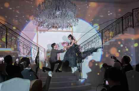 あるあるの演出をあまりしたくないという思いがあったので、ケーキ入刀やファーストバイトはせず、デザートを両家の母に手渡ししました。 また、こちらの式場にはプロジェクションマッピングがあり、再入場の際に取り入れました。 入場シーンがより華やかになり、ゲストからも好評で、たくさんの拍手と共に盛り上がってよかったです。
