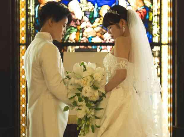 ステンドグラスに誓い、感謝が伝える挙式