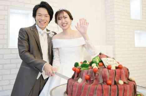 ペーパーアイテム、オープニング・プロフィールムービーは、新郎新婦で協力してインスタや友達から情報をもらって自作しました。 打ち合わせでは定番のイベントよりも、自分たちならではのイベントをしたいと思い、プランナーさんに相談して進めていきました。 ウェディングケーキはローストビーフタワーにしたりとこだわりました。