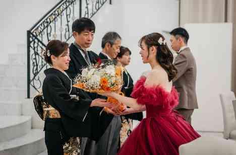 披露宴ではソファ席にすることでゲストの方との距離が近くなり、皆様と一緒に楽しむことが出来ました。 BGMは思い出の曲や好きな曲を1曲ずつ話し合って決めました。音響の方が素敵にかけてくださったので、両親に花束を渡す時も気持ちを込めて渡すことが出来ました。 後日、ゲストの皆様からも「余韻がすごい。」と良いお言葉ももらいました。とっても素敵なエンドロールムービーを見返して2人で毎回泣いています。