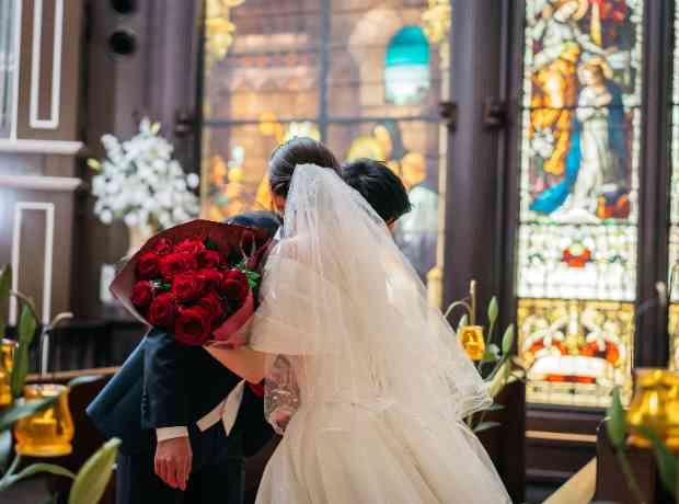 セント・ラファエロチャペルはステンドグラスがとても印象的です。その神秘的な空間に一目惚れをして、こちらの式場に決めさせて頂きました。 バージンロードの傍に飾られている百合の花の香りもゲストの皆様と共有できる素敵なチャペルです。パイプオルガンは生演奏で、歩くスピードに曲の長さを合わせて頂けるので、ゲストの皆様の表情をしっかりと見ながら当日は安心して迎えることが出来ました。