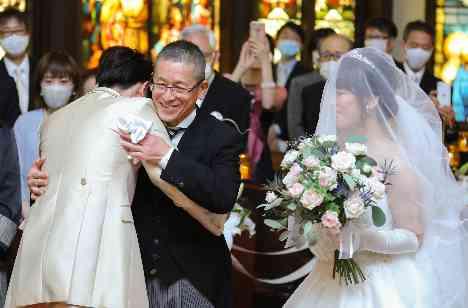 結婚式は親御様へのプレゼントとお考えでいらっしゃり、今まで育ててきてくれた両親への感謝の気持ちを挙式では伝えられました。 また新婦お父様から新郎様へのバトンタッチの際は、ご新郎様より「僕がこれから一生守っていきます」と誓いを込めたハグを新婦お父様に。 とても感動的なシーンとなりました。