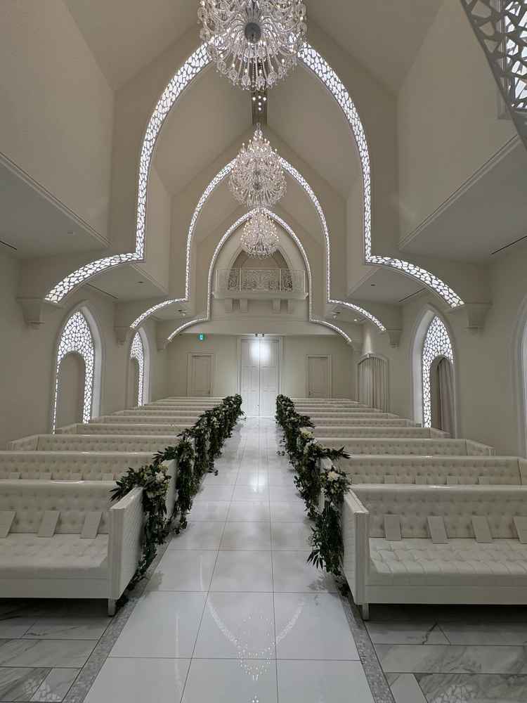 真っ白のチャペルに天使の羽が降ってくるとのことだったので私がやりたいと思ってたことドンピシャでした。