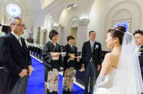 1番やりたかった演出は「ファミリーミート」。 挙式を始める前に、両家両親を呼んで、ドレス姿を初めて見てもらいました。 今までできなかった親孝行として、お父さんには手作りのブートニアを、お母さんには手紙を渡しました。 「ありがとう」なんて普段なかなか言えないけど、この日を迎えられたのも両親のおかげです。 両親には感謝の気持ちでいっぱいです。