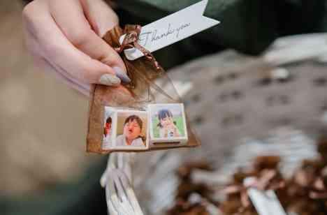 披露宴のおひらきに、おふたりからゲストの皆様へ感謝を込めたプチギフト。 この日はなんと、お子様のかわいらしいお写真がプリントされたオリジナルのお菓子をご用意されました。 思わず笑顔になるような微笑ましいデザインに、受け取ったゲストからは「かわいい!」「もったいなくて食べられない!」という声も。 家族の温かさが伝わる、世界にひとつだけの特別なギフトとなりました。