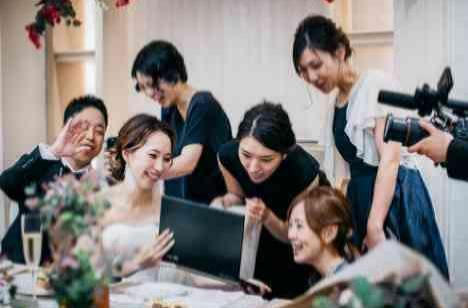 参加できなかったゲストもオンライン参加!披露宴中はずっとふたりの席にパソコンを置いて繋いでいました。新郎も仕事で全国を回り、新婦の出身も長崎のため、このご時世を考え、直接会場に来るのが難しいゲストもオンラインで参加してくれたのは本当に嬉しかったです。しっかり顔を見て「ありがとう」と伝えることができました。