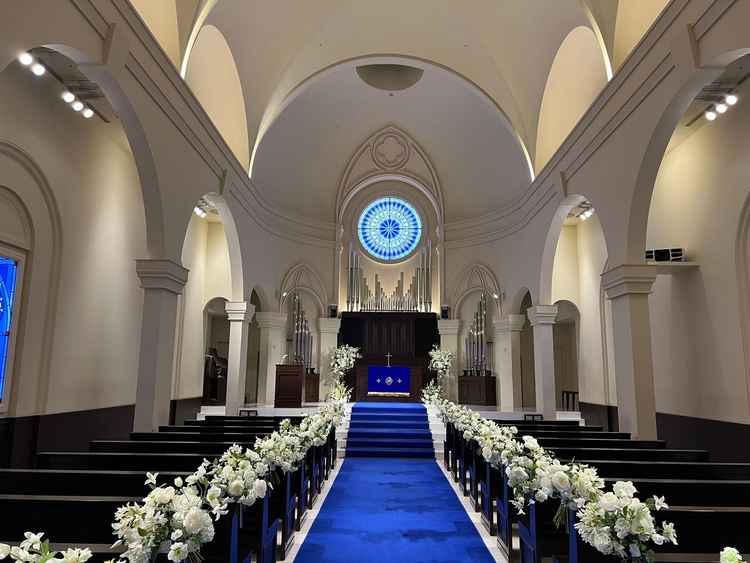 都会だけど少し外れていることで周辺もごちやごちゃしておらず、外観、ロビー、チャペルもとても広々としていて綺麗で良かった。