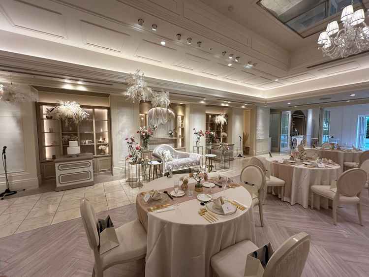 なんばエリアとは思えない非日常を感じられる。披露宴会場のドアがくもりガラスと透明ガラスに切り替えができて面白いと思った。