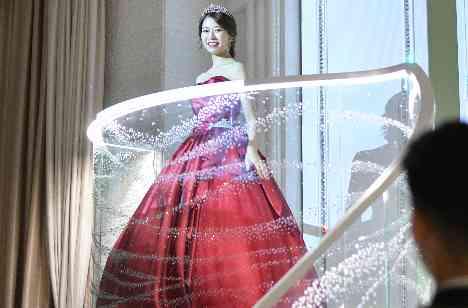 小さい頃からの夢だった、螺旋階段からのお色直し入場✧°クリスタルで作られた階段だからこそ、華やかな深紅のドレスが映え、美しいワンシーンとなりました。ゲストの皆様からも大好評で、まるで映画のワンシーンのような一生思い出に残る瞬間でした!新郎様はもう一つの扉から入場し、階段上の新婦様をお迎えに行く“ブーケ伝説”の演出も素敵でした。