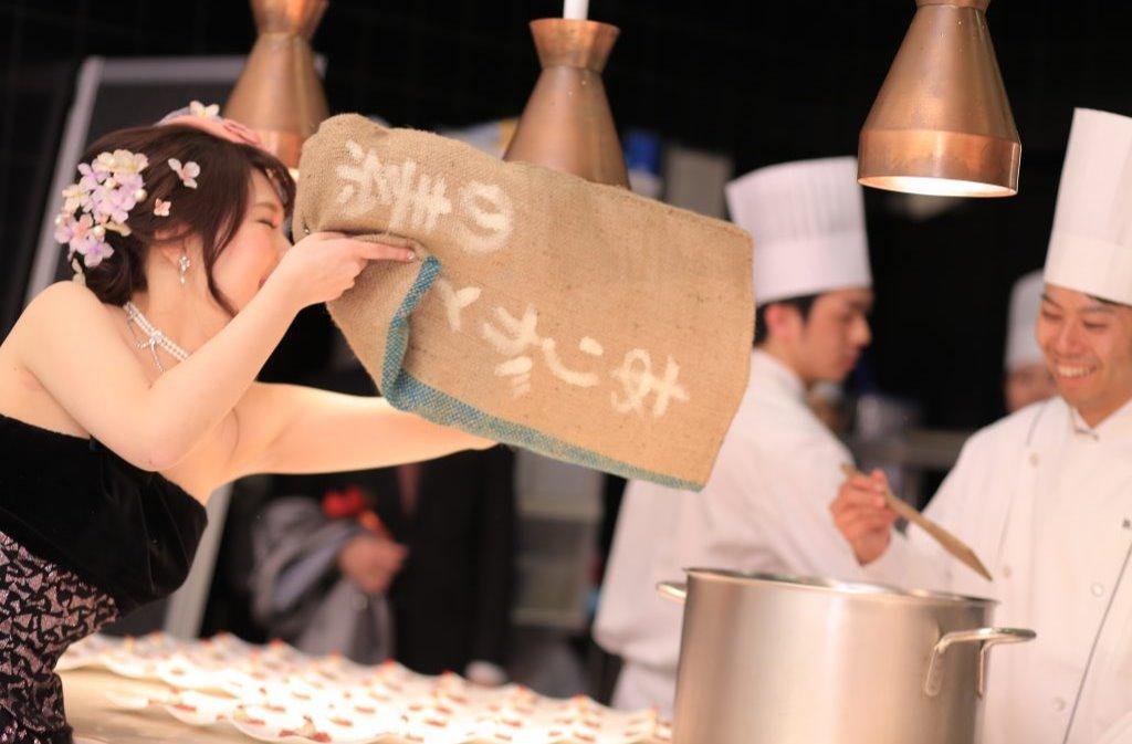 ゲストの皆様にありがとうの気持ちを伝える気持ちを演出に組み込みたい!そんな希望でお料理提供前に”ありがとうの素”をそそぎました☆